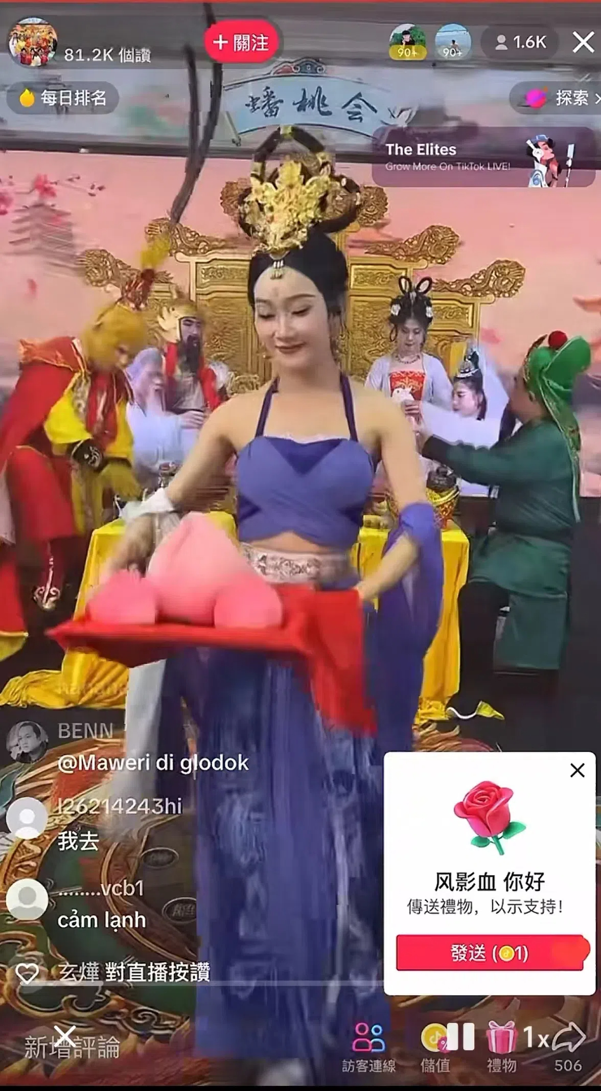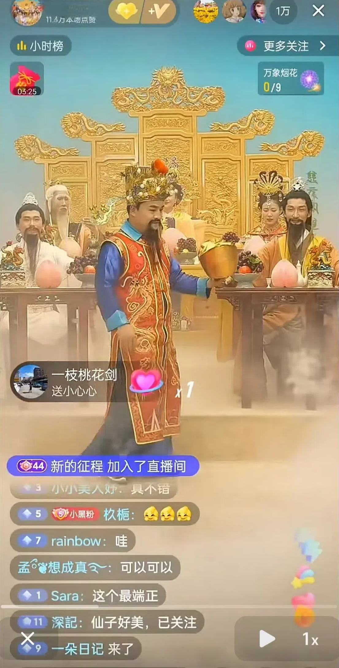 说白了就是你刷礼物,蟠桃会的神仙给你现场表演。就问你惊不惊喜,意不意外。
