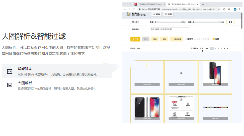 支持智能脚本,自动筛选用户需要的图片,比如电商图片自动筛选主图、SKU图、详情图,并分类展示