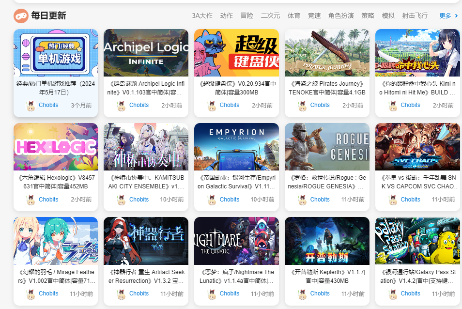PC 端游戏资源分享网,5000+单机热门 PC 游戏资源网站