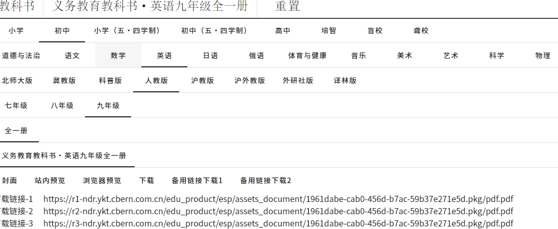 支持在线预览及下载!含小学、初中和高中阶段教科书资源的网站,包括五•四学制的教材和电子教材