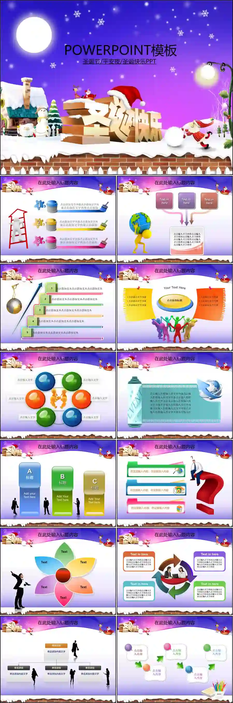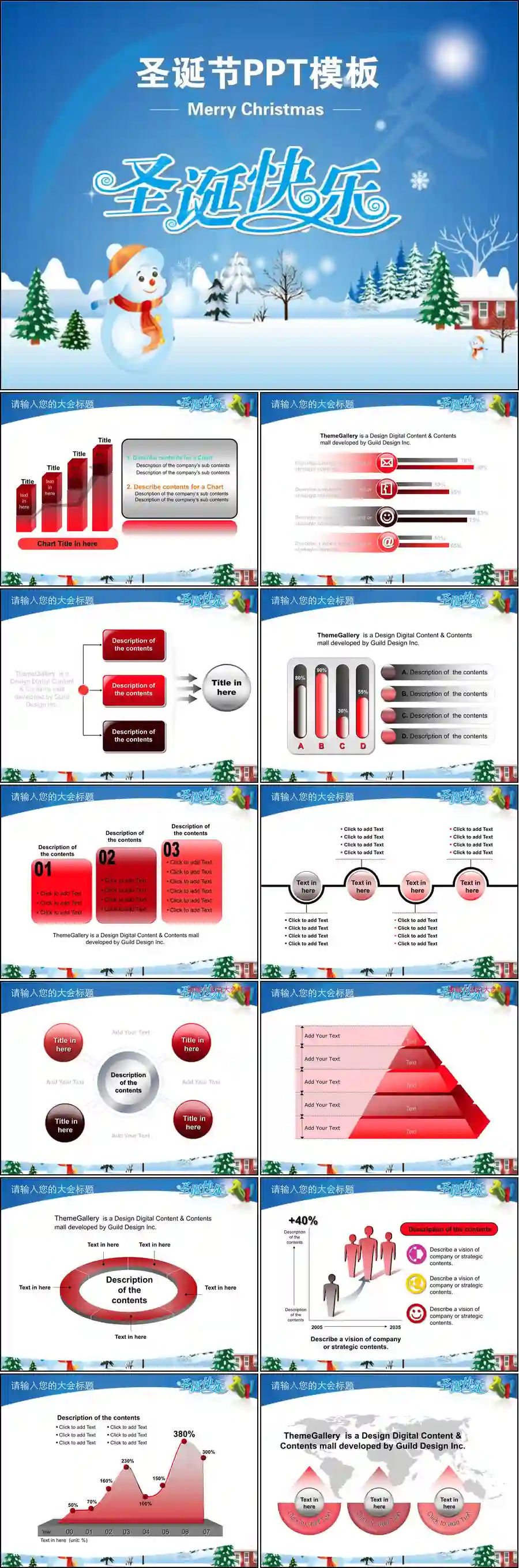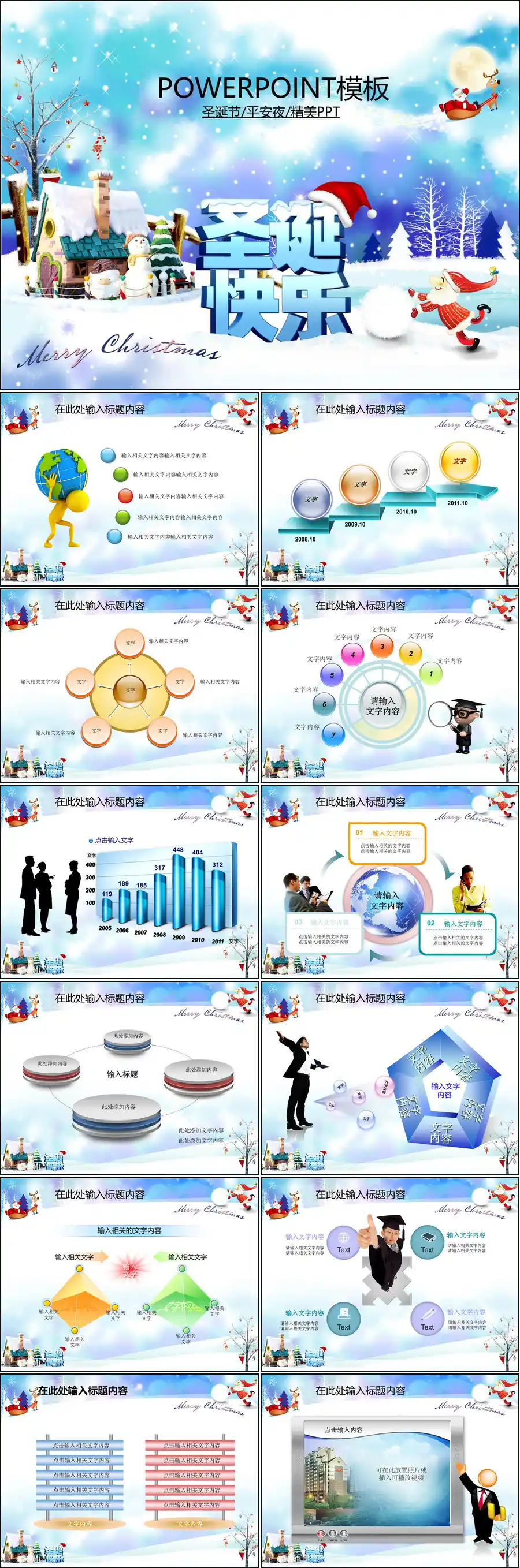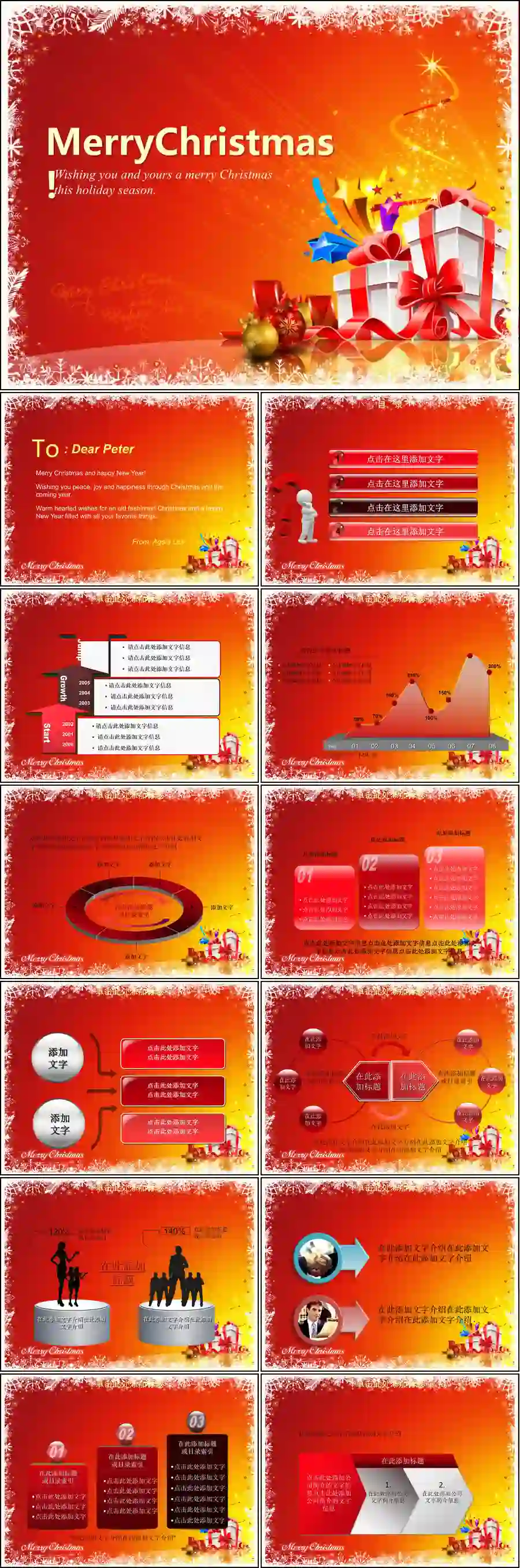 圣诞节PPT模板148套节日PPT模板系列,涵盖多种风格,包括卡通、简约、华丽等,满足不同场合需求。每套模板均包含精美的圣诞元素,如雪花、圣诞树、铃铛等,设计感十足。内容布局合理,易于编辑,适合企业年会、学校活动、节日庆祝等场合使用,助您轻松打造专业且富有节日氛围的演示文稿。