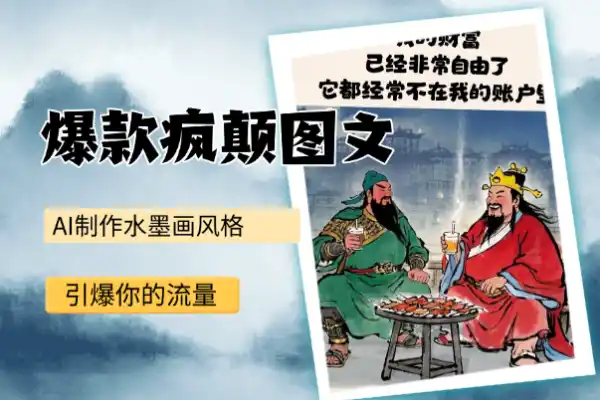水墨画风格的古代名人+现代生活的图片+疯癫文案