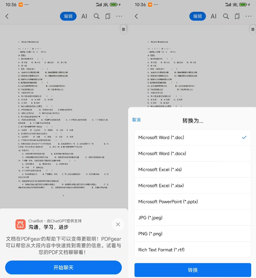 • 支持PDF转Word、PDF转Excel、PDF转PPT、PDT转图片等等功能。