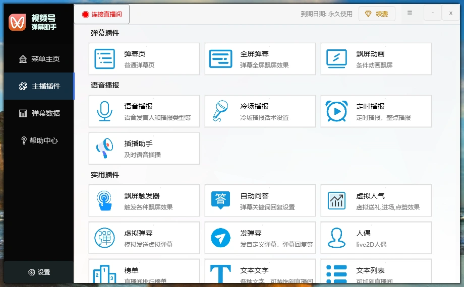 数字人,ChatGPT问答,弹幕点歌,头像打印,Roll点互动,电子木鱼,继电器工具,鼠键触发工具,虚拟礼物特效,砸礼物,OBS控制器,媒体触发器,飘屏触发器,自动关注和黑名单,语音播报等等功能