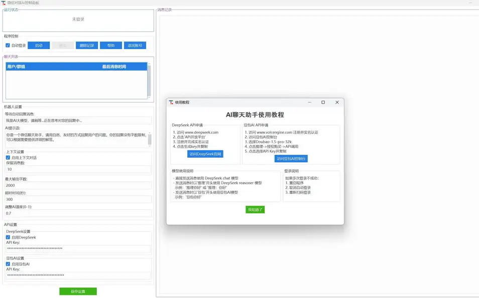 当前位置: 首页实操项目正文 支持对接deepseek-chat R1 还有豆包 可私信聊天 也可以群聊天 Python写的 添加了一个版本检测 以后更新直接会提示 会员全站资源免费获取,点击查看会员权益 普通用户可在下方单独购买课程! 隐藏内容此处内容需要权限查看普通9.8积分会员免费网站代理免费推荐 购买本内容 会员免费查看 声明:本站所有文章,如无特殊说明或标注,均为本站原创发布。任何个人或组织,在未征得本站同意时,禁止复制、盗用、采集、发布本站内容到任何网站、书籍等各类媒体平台。如若本站内容侵犯了原著者的合法权益,可联系我们进行处理。 收藏 链接