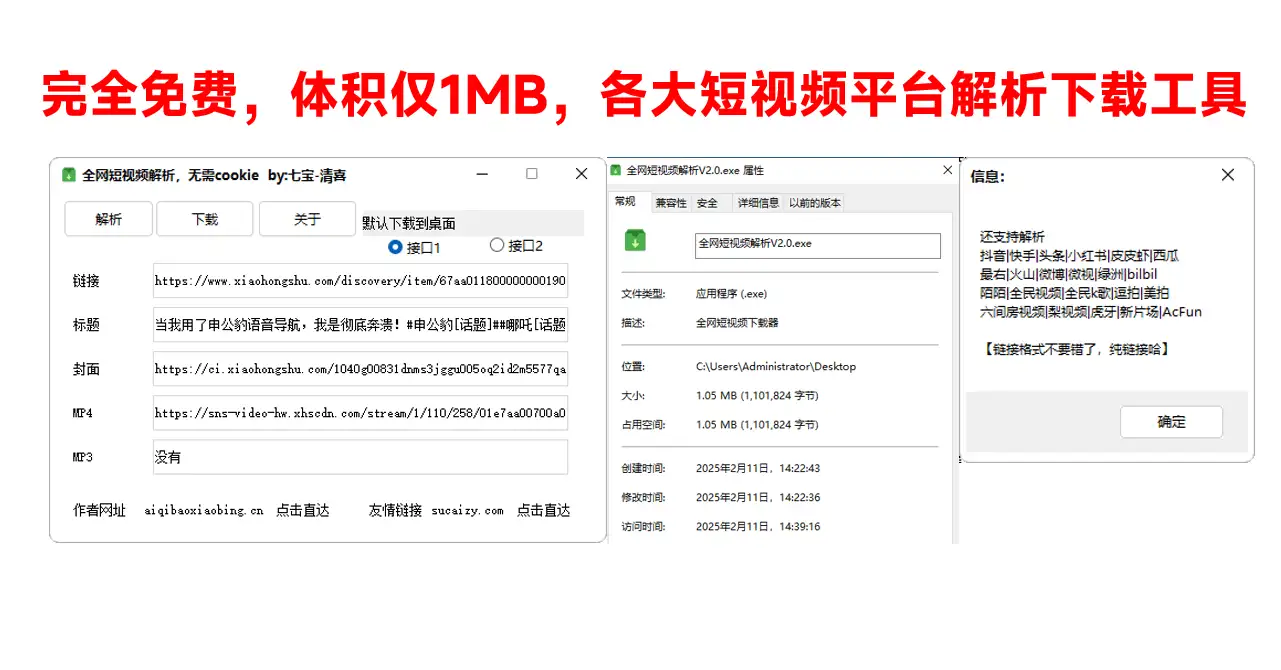 在短视频逐渐成为人们日常生活的重要组成部分时,很多用户希望将喜爱的内容保存下来,但平台的水印限制往往让人头疼。现在,我们为您提供了一款2025最新全网短视频解析工具,它可以帮助您轻松去除短视频中的水印,保存高清无水印的内容。这款工具支持抖音、快手、小红书、B站等主流平台的视频解析,完全免费,体积小巧,仅1MB,使用简单,效果稳定。