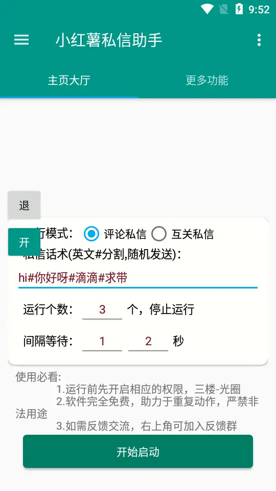 小红书私信助手是一款专为自媒体人设计的自动化营销工具。通过智能私信功能,它可以帮助你在小红书上高效获取粉丝并转化为客户。无论是新手小白还是资深运营者,都能通过这款工具快速提升人气和获客效率。