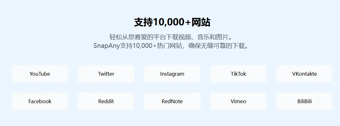 能够方便地下载和保存喜欢的视频、音乐和图片是一种极大的便利。今天,我要为大家介绍一款我偶然发现的神器——SnapAny。它不仅支持10,000+热门网站的视频、音乐和图片下载,还完全免费且功能强大,最高支持8K画质。