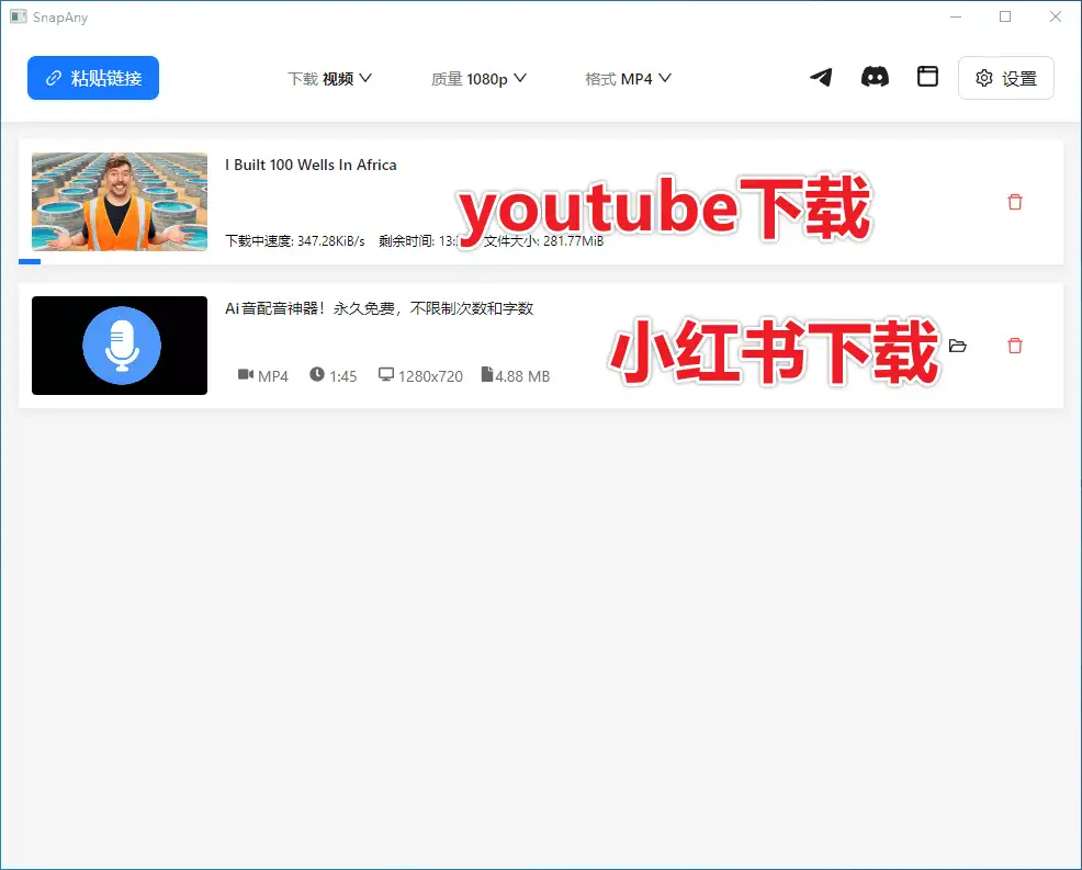 经过我的亲测,SnapAny能够完美下载YouTube、小红书和B站的内容。无论是热门视频还是小众内容,SnapAny都能轻松应对。软件操作简单,界面友好,即使是新手也能快速上手。