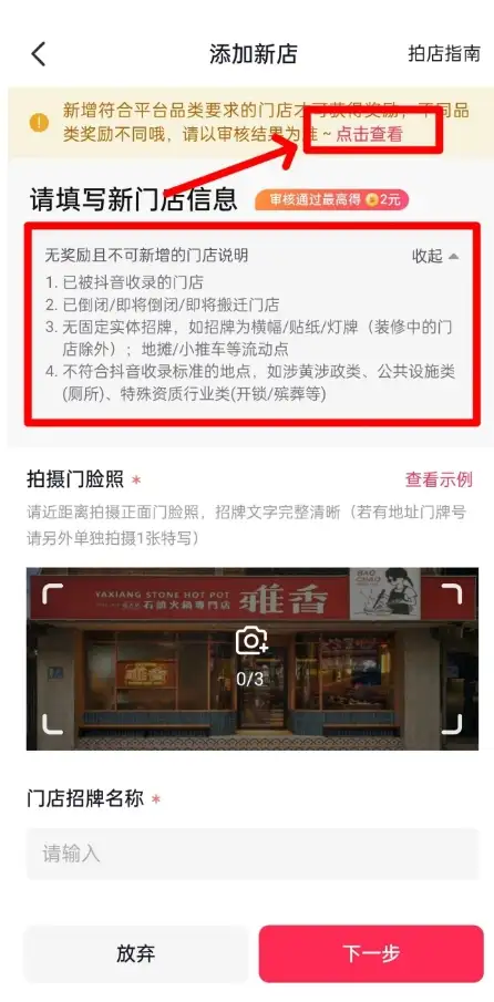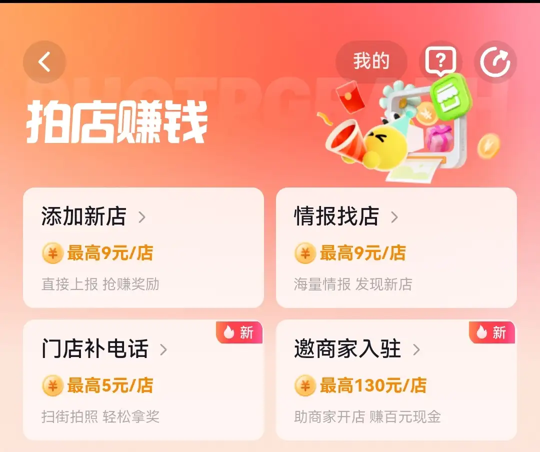抖音的“拍店赚钱”项目类似于曾经流行的高德地图淘金活动。用户只需要根据抖音的要求,对商家门店进行拍照并补充相关信息,就可以获得相应的佣金奖励。每完成一家门店的信息补充,就能获得几元到十几元不等的收入,而一些热门或大型商家的佣金甚至可以达到100多元。