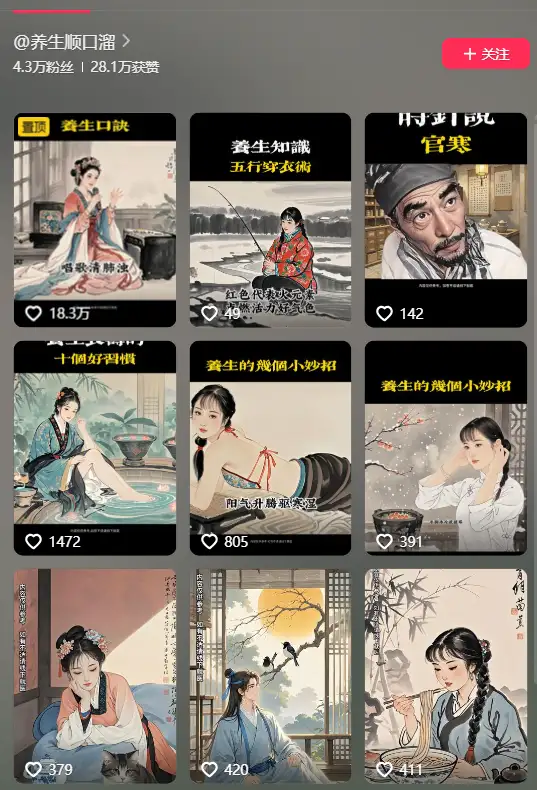 在快节奏的现代生活中,健康养生已经成为人们越来越关注的话题。尤其是近年来,不少名人因健康问题早早离世,更是让健康养生类内容频繁成为焦点。中式养生,凭借其深厚的文化底蕴和独特的养生理念,热度迅速攀升。而古风漫画的形式,更是以其独特的视觉吸引力,成为一种绝佳的内容呈现方式。