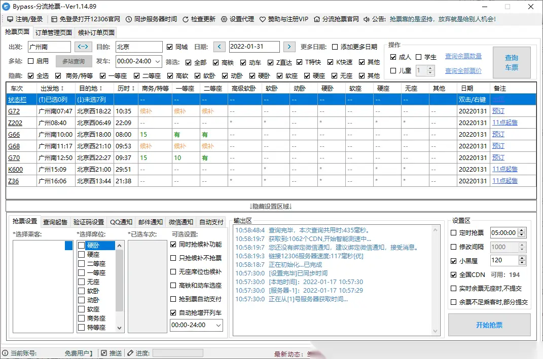 - 支持候补票:优先抢候补票,提高抢票成功率。