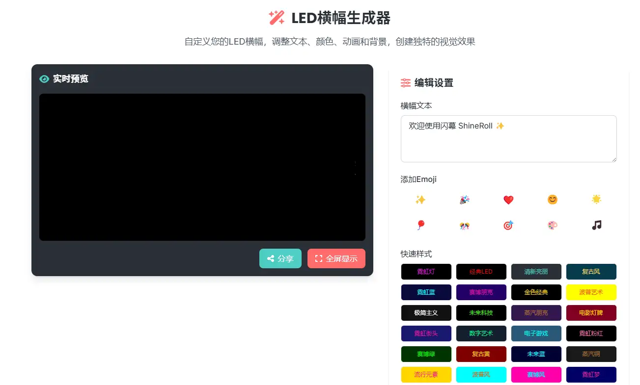- 为了让设计出的横幅更具吸引力和活力,该工具特别融入了动态 LED 效果。在设计过程中,用户可以轻松添加如闪烁、流动、渐变等丰富的 LED 动态效果到横幅的关键元素上。例如,将闪烁效果应用于活动主题文字,使其在众多信息中脱颖而出,瞬间抓住观众的眼球;或者为促销优惠信息添加流动效果,营造出一种紧迫感和动感氛围,激发观众的参与欲望。动态 LED 效果的巧妙运用,不仅让静态的横幅瞬间生动起来,更能在视觉上形成强烈的冲击力,有效提升横幅的吸引力和传播力,尤其适合用于需要营造热烈氛围和吸引持续关注的活动场景。