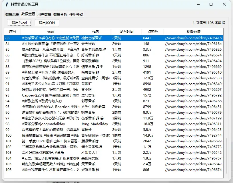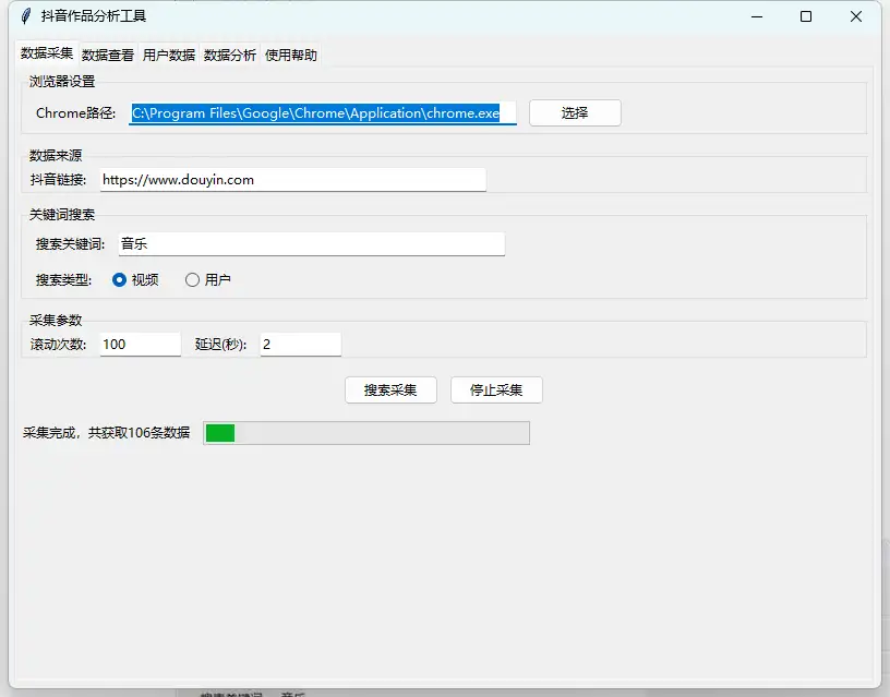 - 链接采集:直接输入抖音视频或用户主页链接,精准获取特定内容数据