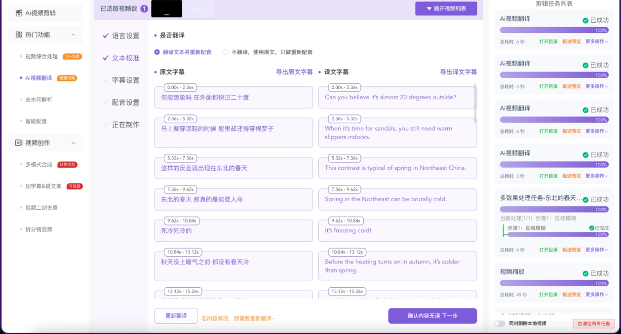- 多语言视频翻译:支持 12 国语言字幕生成,配合 AI 语音合成,助力短剧出海及全球内容二创