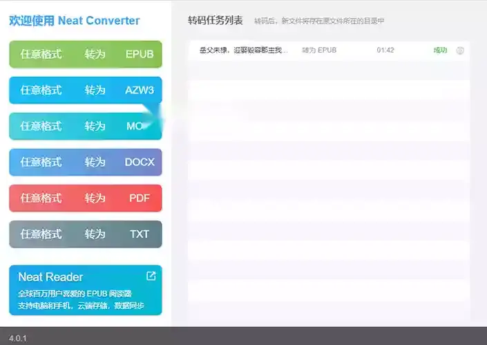 本款专业级电子书格式转换器支持六大主流文档格式互转功能,包含 EPUB、AZW3、MOBI、DOCX、PDF、TXT 等常见小说文件类型。通过智能化文档解析引擎,可完整保留原文件排版格式与章节结构,适配 Kindle、手机阅读器、平板电脑等多种电子设备阅读需求。