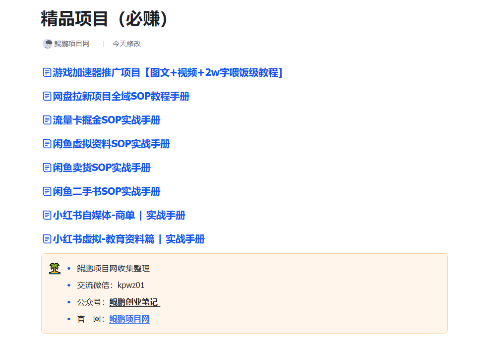此页会定期更新,项目由站长亲自挑选,经过网站会员以及社群用户验证过的,只要做就能见钱,此页任何一个项目都能直接值回数倍票价。