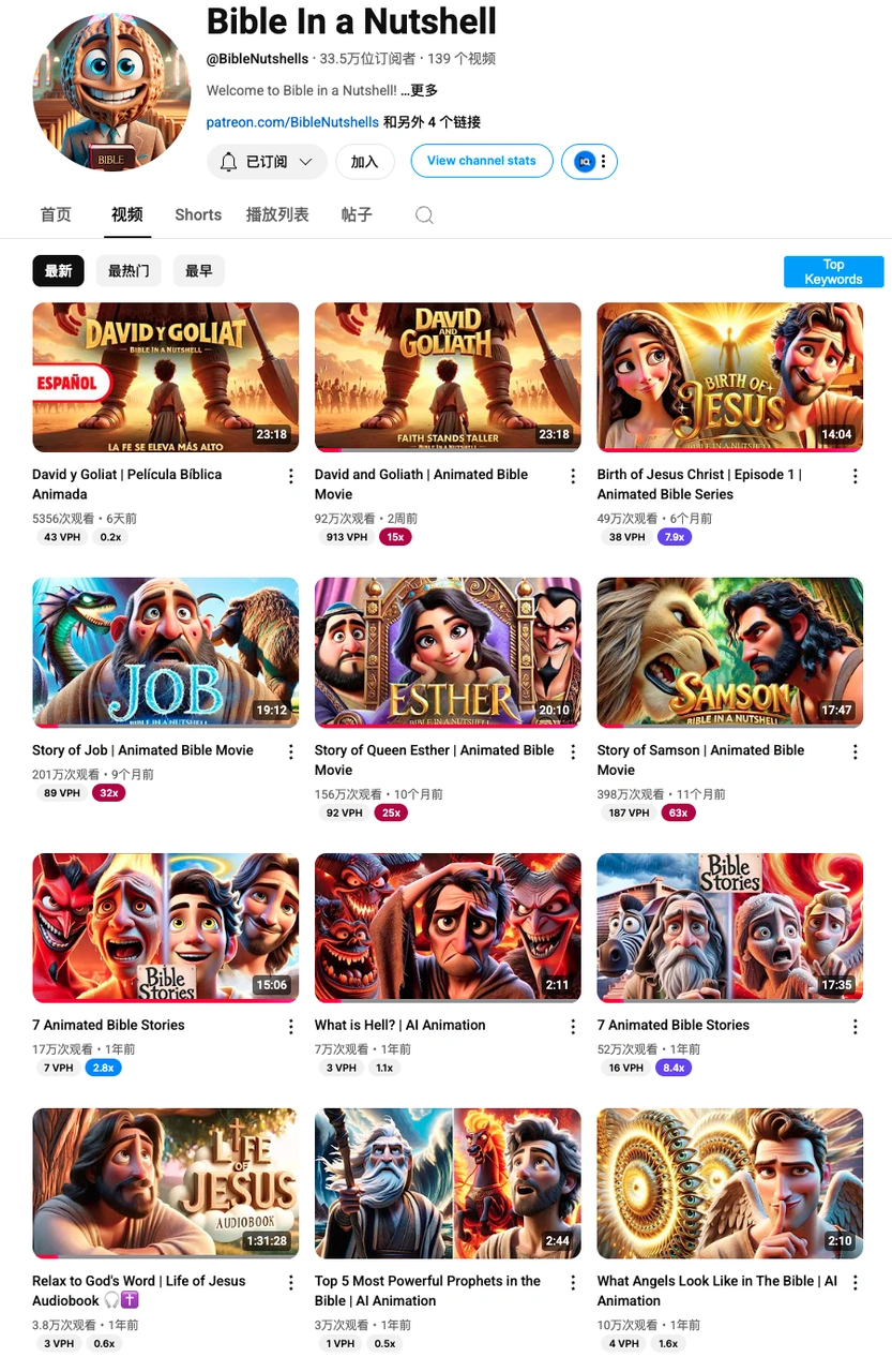 • 为什么选择拆解圣经赛道的AI 动画频道?