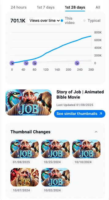 • 而本篇帖子重点拆解的频道:Bible In a Nutshell ,不依靠真人出镜,不依赖夸张猎奇,就是这个赛道的头部之一。在短短一年内,吸引了全球超过32万订阅者,并创造出单视频近400万播放的“增长神话”。根据Social Blade的数据估算,其月收入范围在 $375 – $6K 之间。