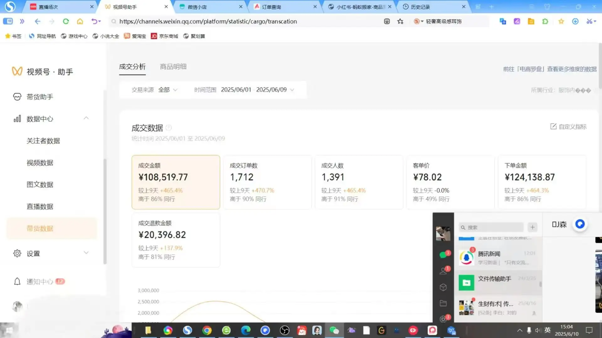 - 根据以往做电商的逻辑,看一眼视频号广场的店铺后台我就知道那些账号的店铺数据,因为之前测试过红书店铺和直播项目以及大学时期很多时间有测试跑通项目的经历,所以那些打视频号无人的逻辑基本看一眼就拆解出来,于是带着几个朋友立马测试进行入场开跑。