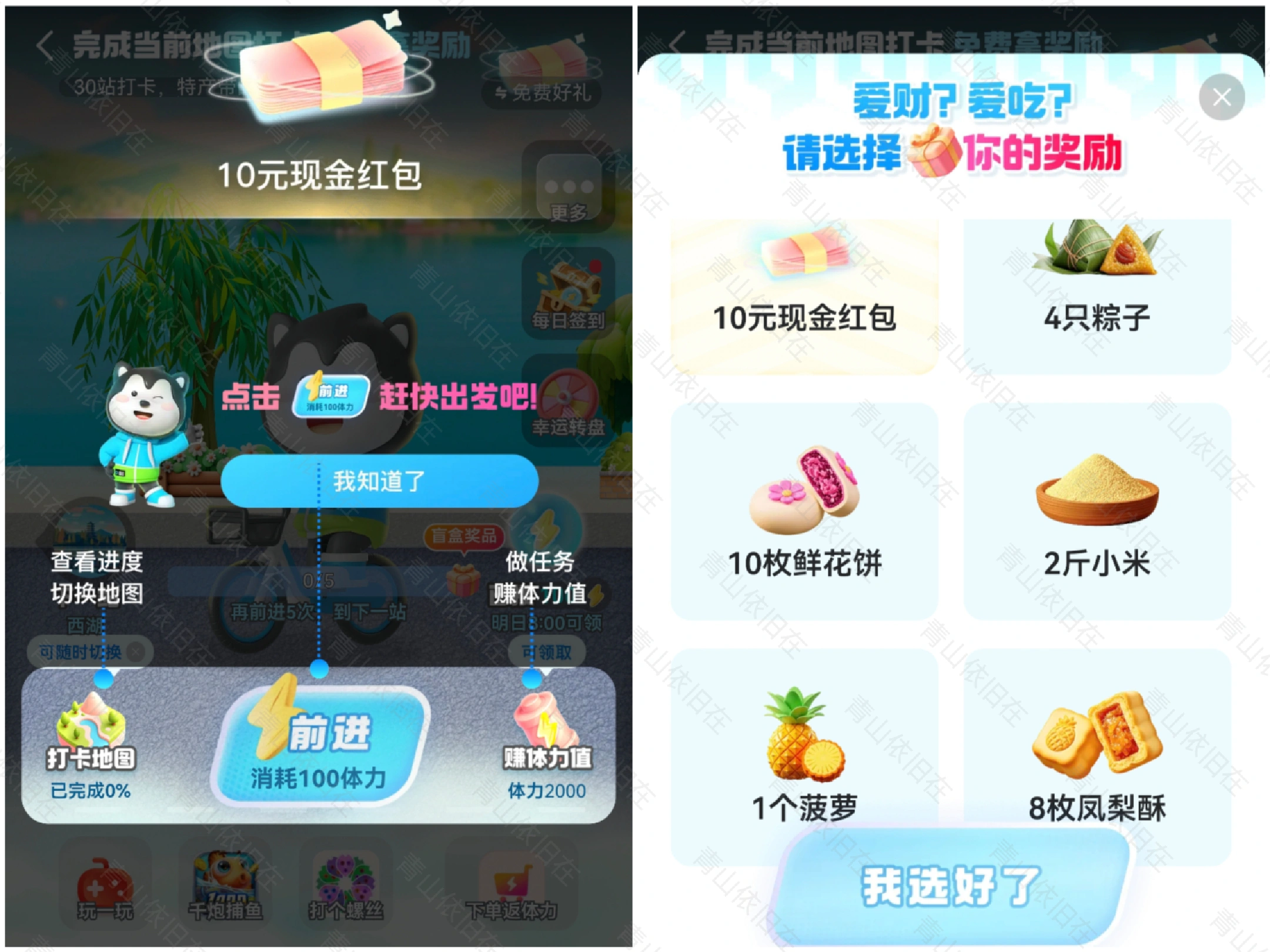 - 哈啰打卡地图领10元现金/实物好礼六选一