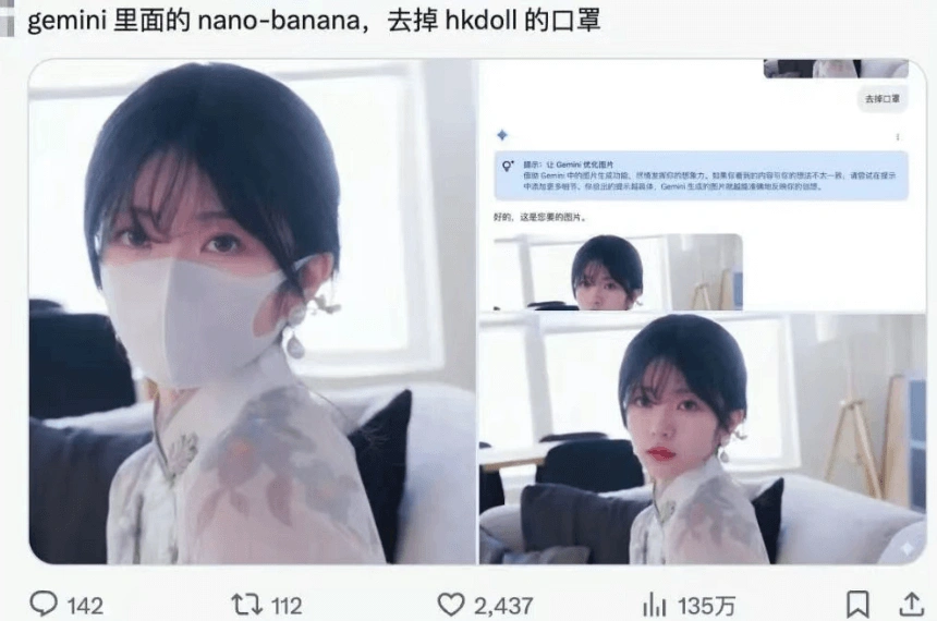 - 比如推特上有人给玩偶姐姐去掉了口罩,玩偶姐姐本人都点赞。