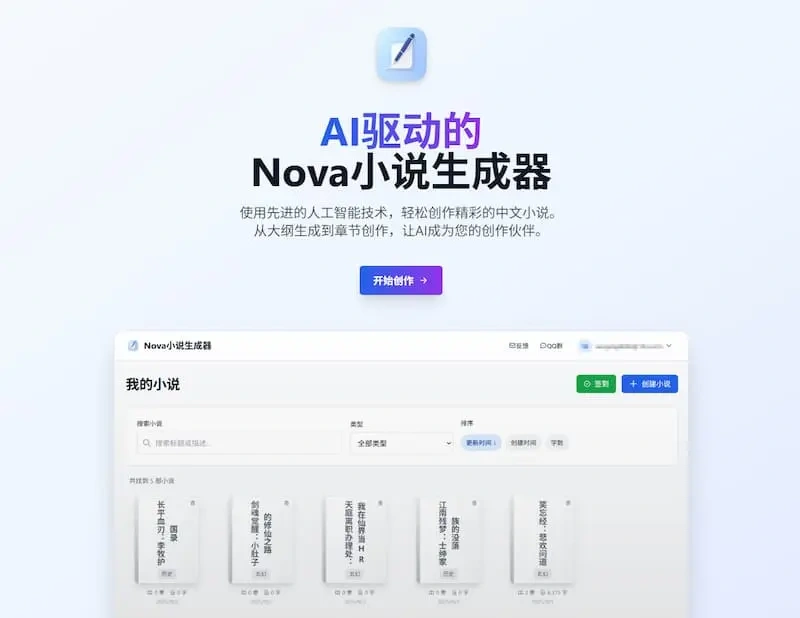 - “中文小说生成器” 是一个 AI 驱动的创作辅助平台