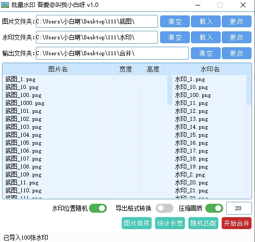 • 支持一键给图片文件夹批量添加水印,支持文字水印和图片水印,可以一键铺满全屏