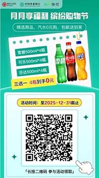 • 这是农业银行出的月月享福利活动,每个月都可以领,这次的是领10元数字人民币,然后可以买4瓶饮料。