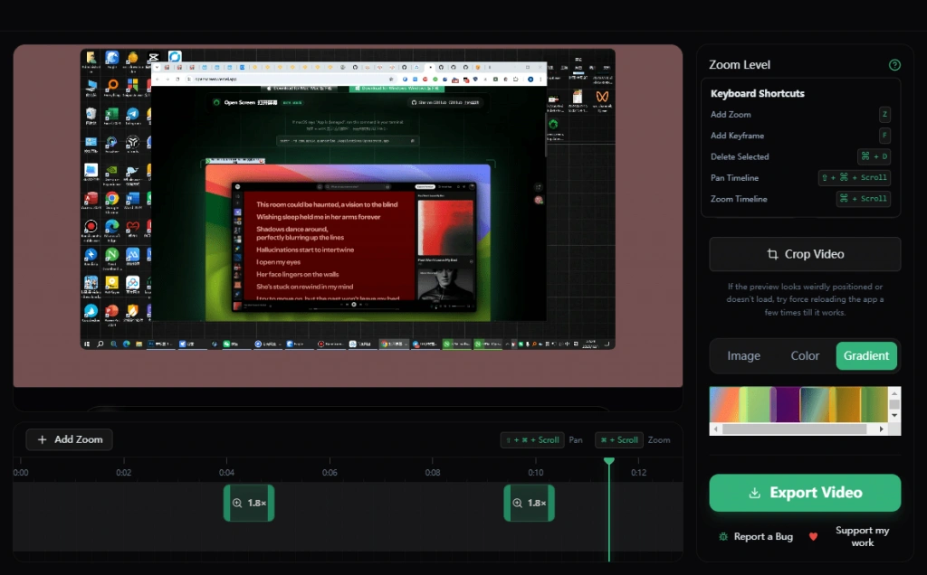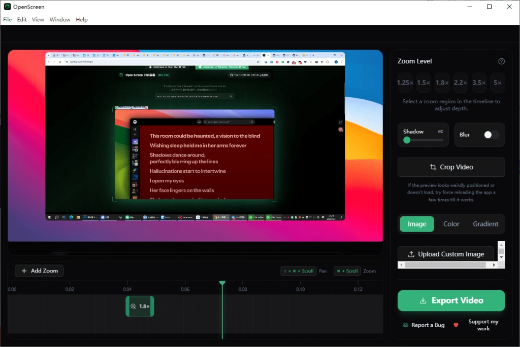 - 今天正巧发现了这款Openscreen,支持对演示类、教程类视频进行缩放和局部放大效果制作,使用非常简单,而且支持快捷键操作