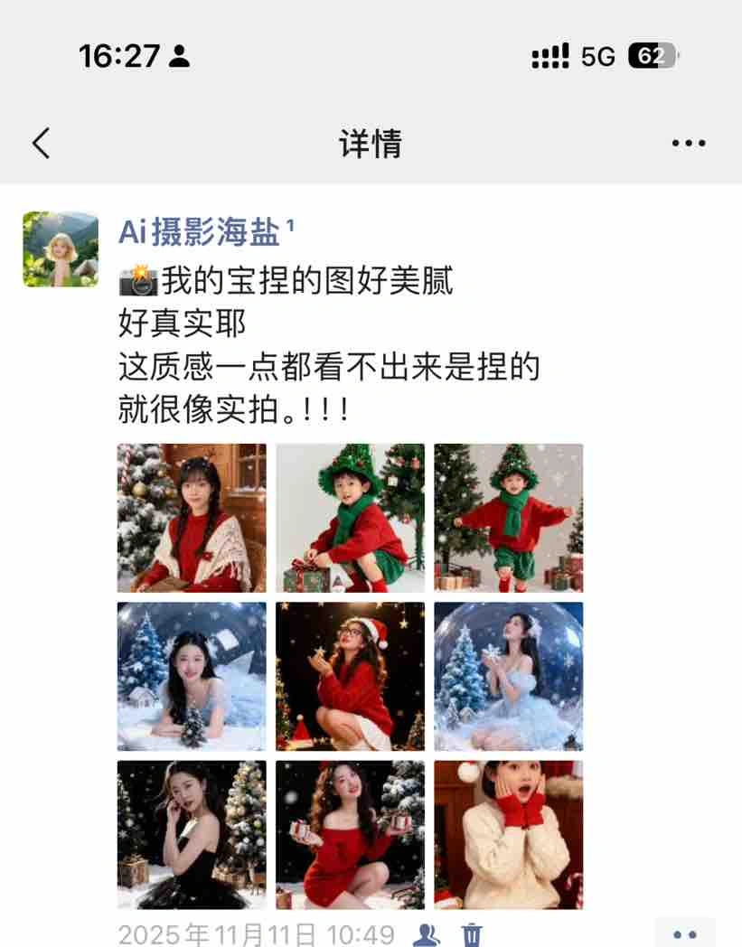 - 近你们的朋友圈是不是被各种AI圣诞写真刷屏了?就是那种人站在圣诞树前、雪花飘落、氛围感拉满的照片,但仔细一看,又不是真人拍的。